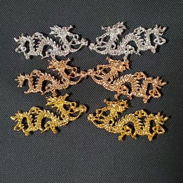ドラゴンパーツ ハンドメイド素材 ※簡易包装での発送です サイズ::約5.8cm×3cm 素材: 金属 ※写真は入荷商品の一部を撮影したものです。入荷時期などによって、色味や風合いが異なることがございます ※汗や水分などは変色、メッキ剥がれ等の原因となります。 汗や水分が付いた場合は、柔らかい布等で水分を拭きとって下さい。 ※サイズはあくまで目安です 表記外のサイズがあることもございます 画像と色合いが違う場合があります。 金属アレルギーのある方はご注文をお控えください 効果には個人差があります。 返品交換は承っておりません。 ご了承いただける方のみご注文くださいませ #チャームの情報はこちら #eriの掲載情報はこちら #龍 #ドラゴン #チャーム