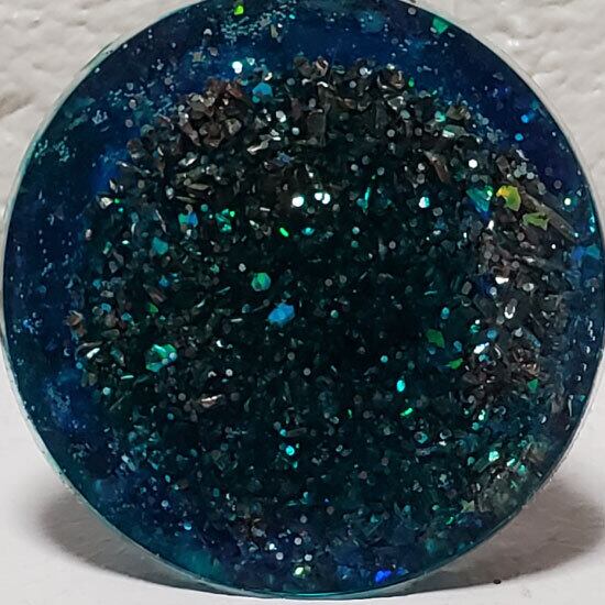 レジン(樹脂)で固めの鉱石を入れますのでキラキラした仕上がりです。