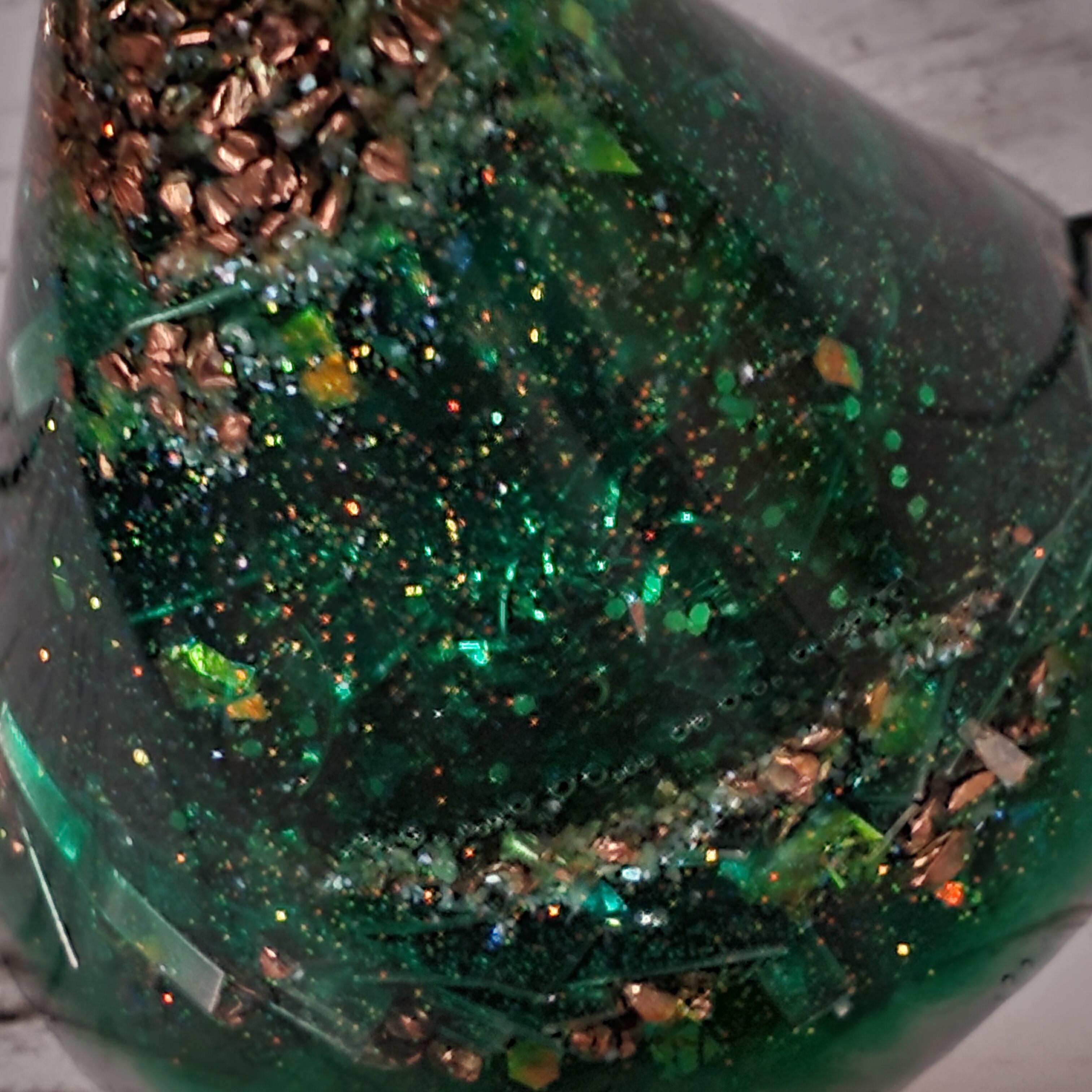 レジン(樹脂)で固めの鉱石を入れますのでキラキラした仕上がりです。