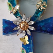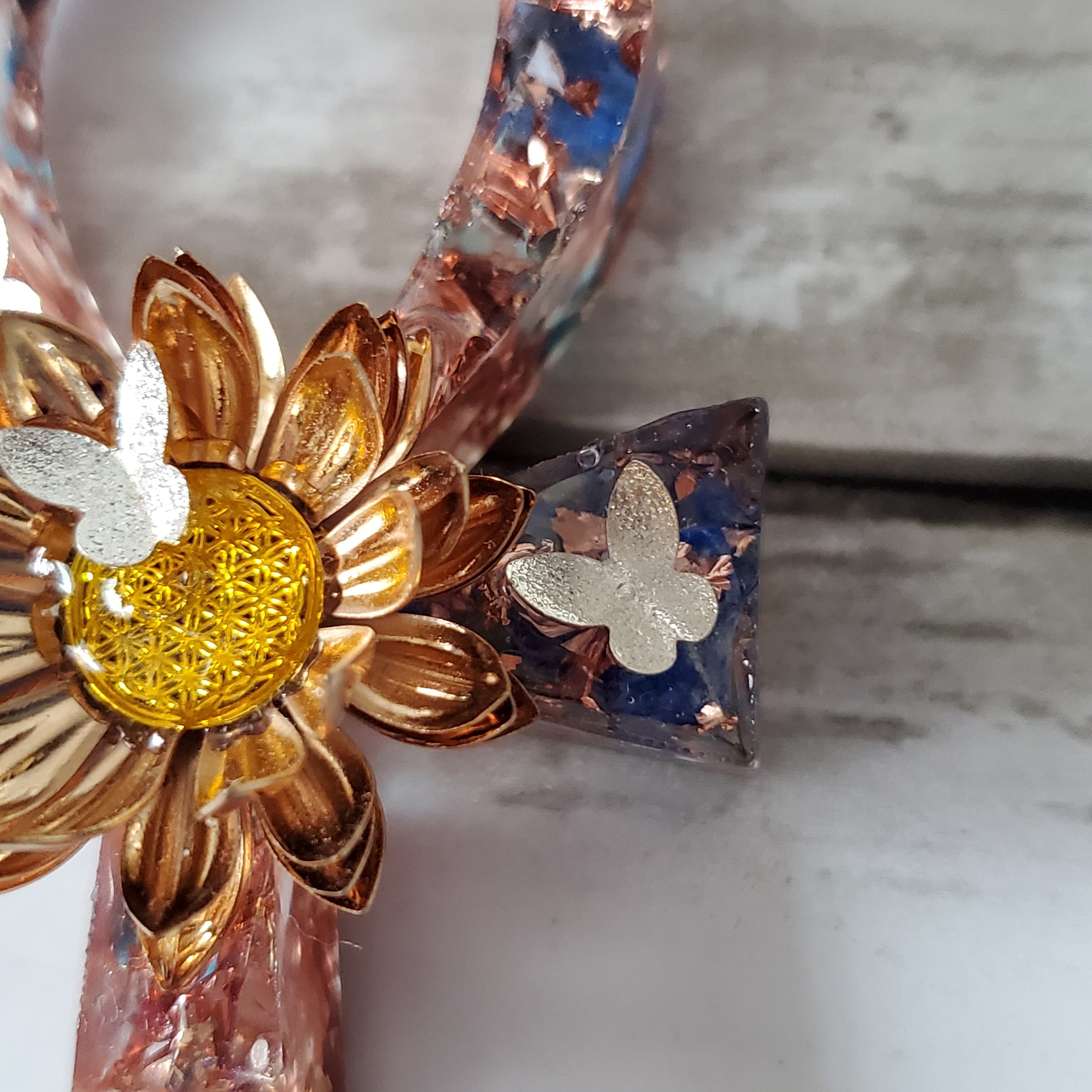 夢見る気持ちを刺激する、鮮やかなフラワー蝶々アンク。華やかなデザインで、オリジナルで個性的なアクセサリーを楽しみたい方にお勧め。
