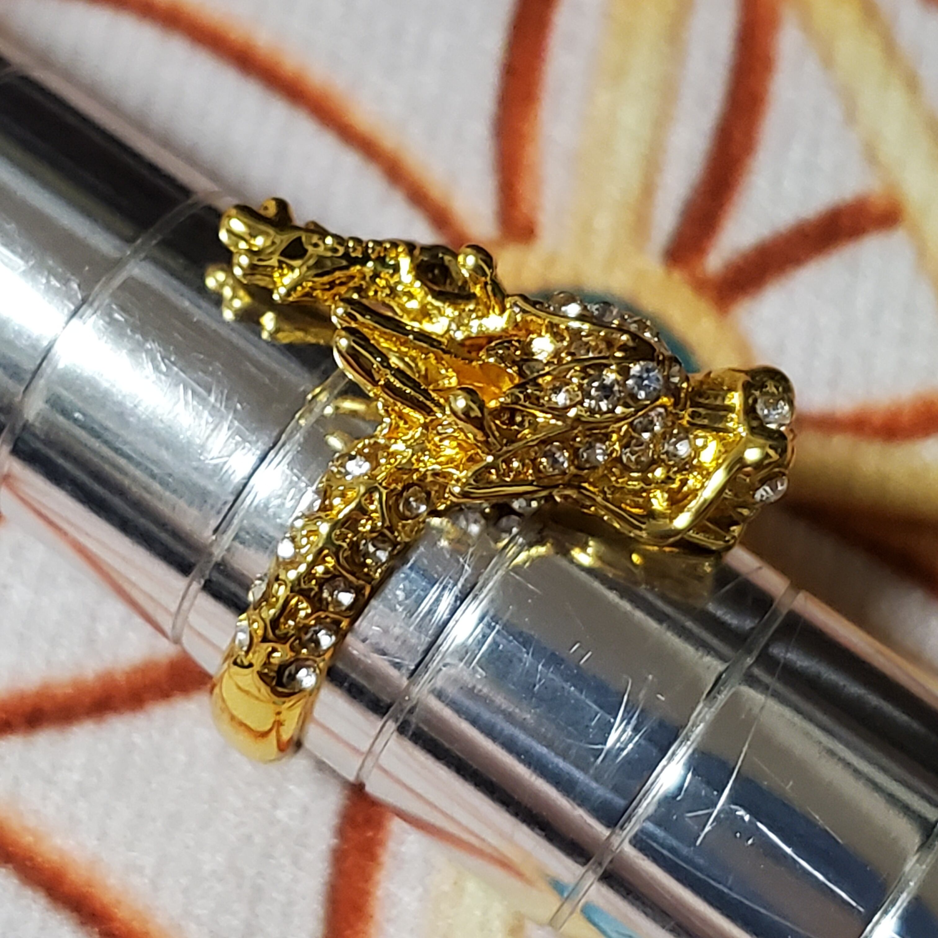 キラキラ輝く龍神リングです。龍神様の力を感じられるゴールドカラーのリングは、華やかさと神秘性を兼ね備えています。龍神様は古来より幸運や成功をもたらすと言われており、このリングを身につければ、あなたの運気が一気に上がるかもしれません。