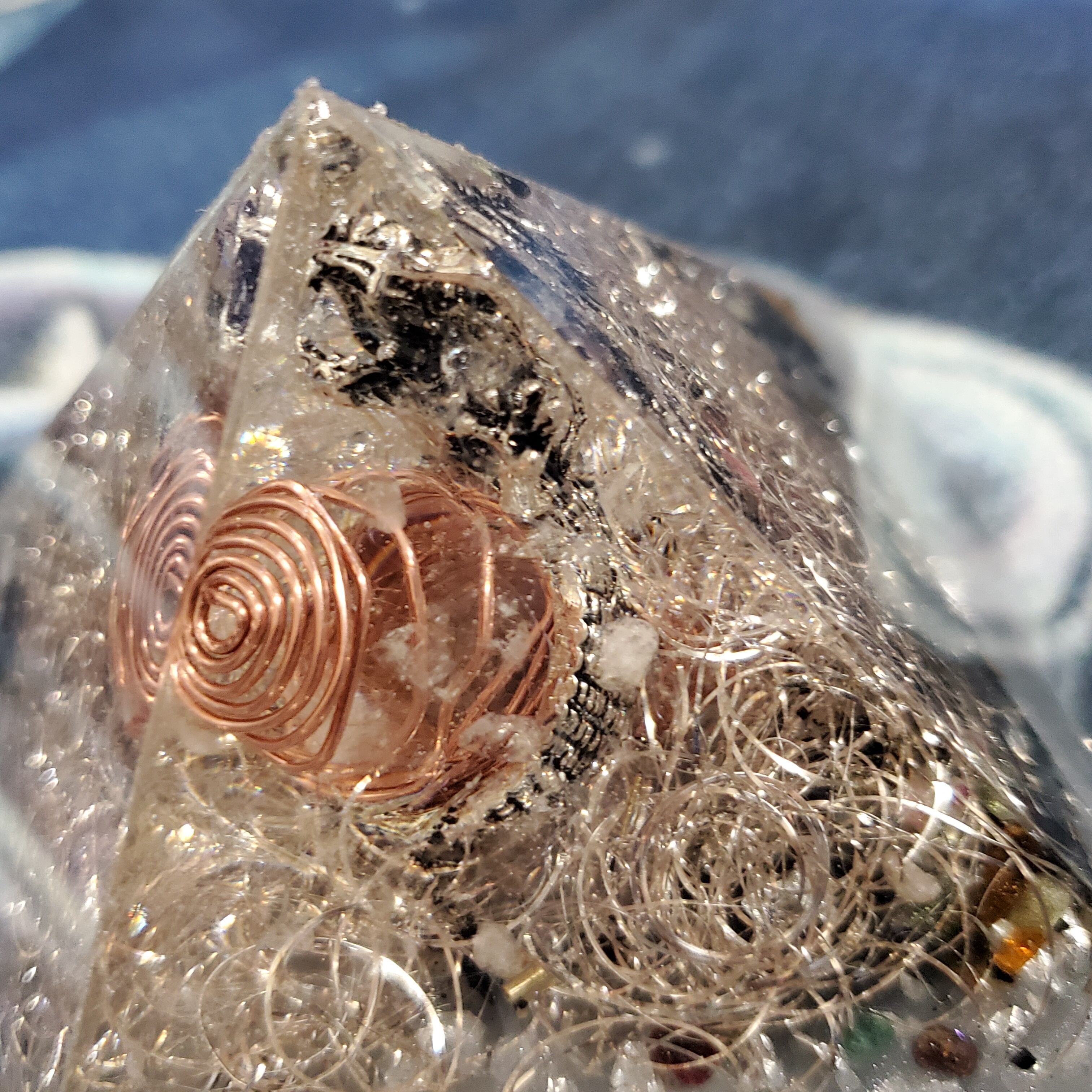銀龍神の白銀比オルゴナイトピラミッド(陰陽)