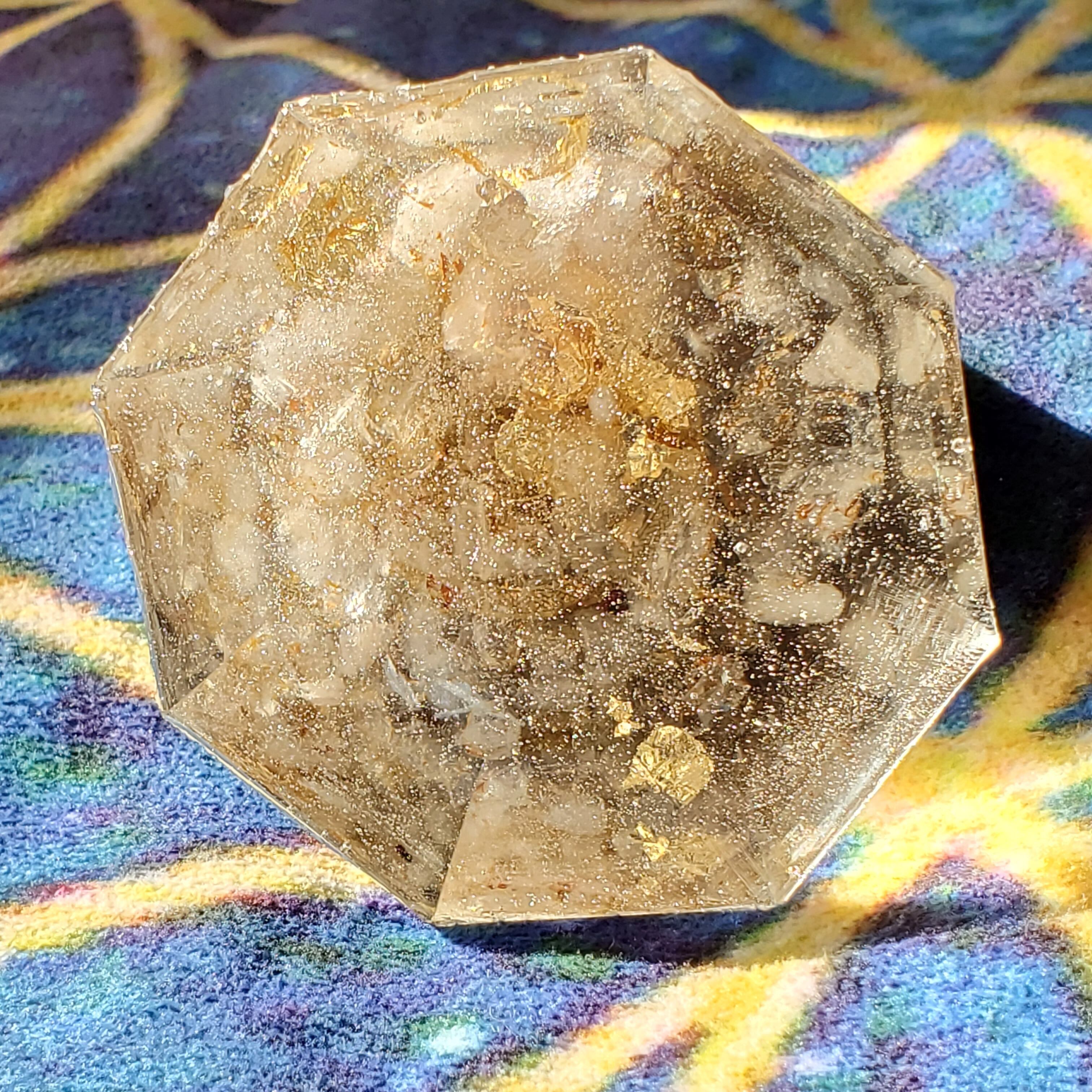 また、このオルゴナイトは八角錐形の形状にこだわって作られています。この形は、宇宙のエネルギーを集める力があり、ポジティブなエネルギーを身に纏う効果が期待できます。さらに、隕石の粉を使用することで、より強力なエネルギーを!意図しています