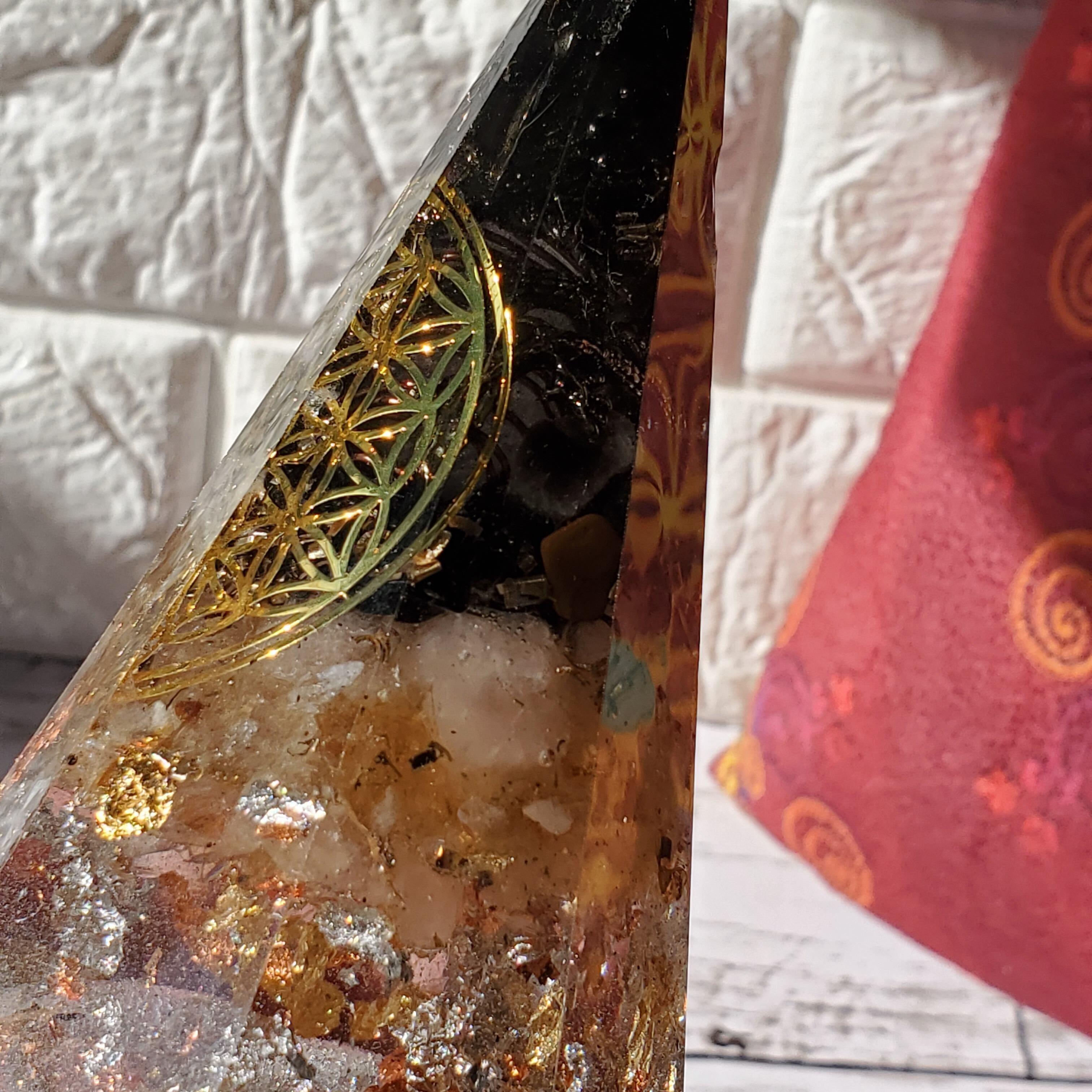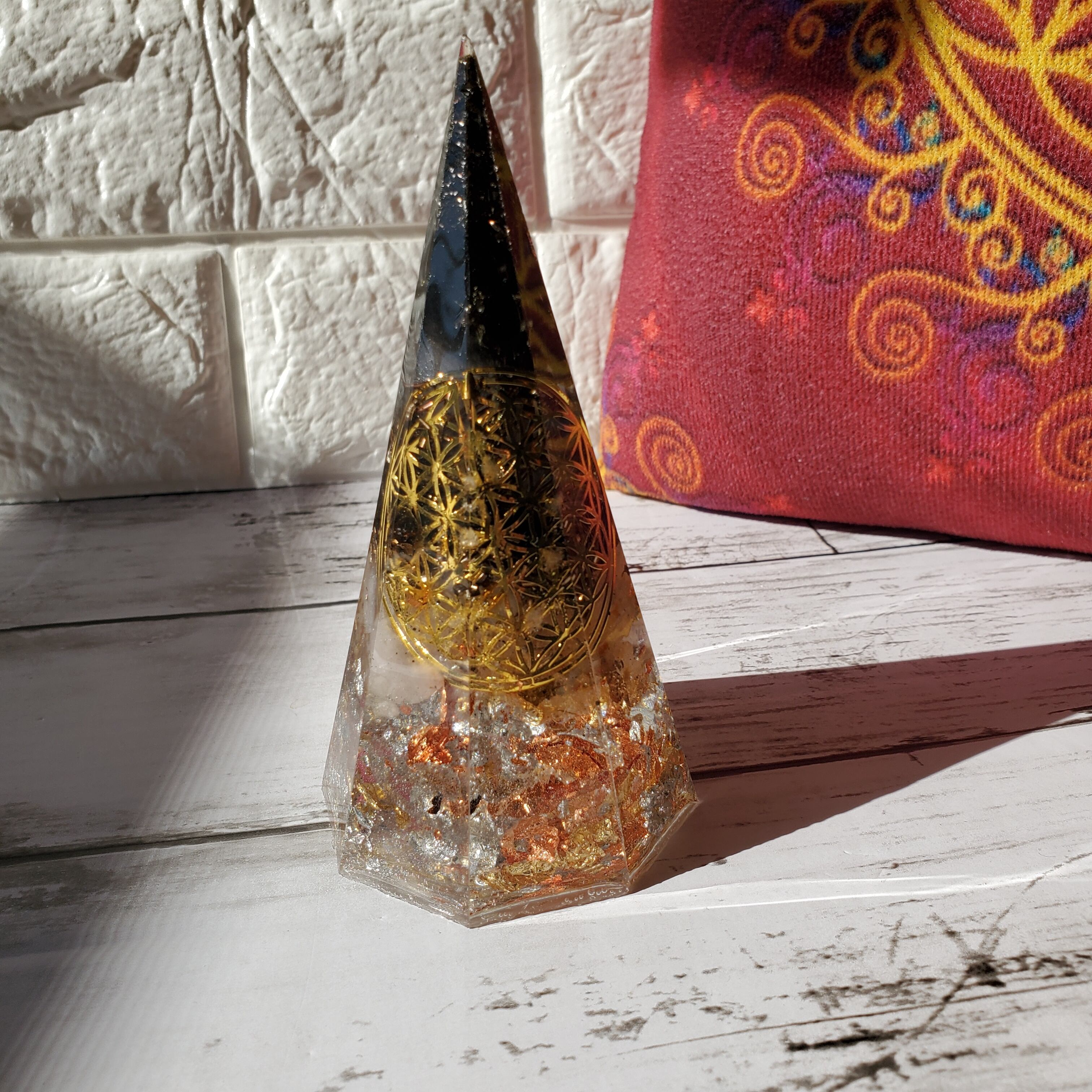 約13cm 金龍神 ブラック八角錐オルゴナイト 隕石の粉 イヤシロチパウダー 金運