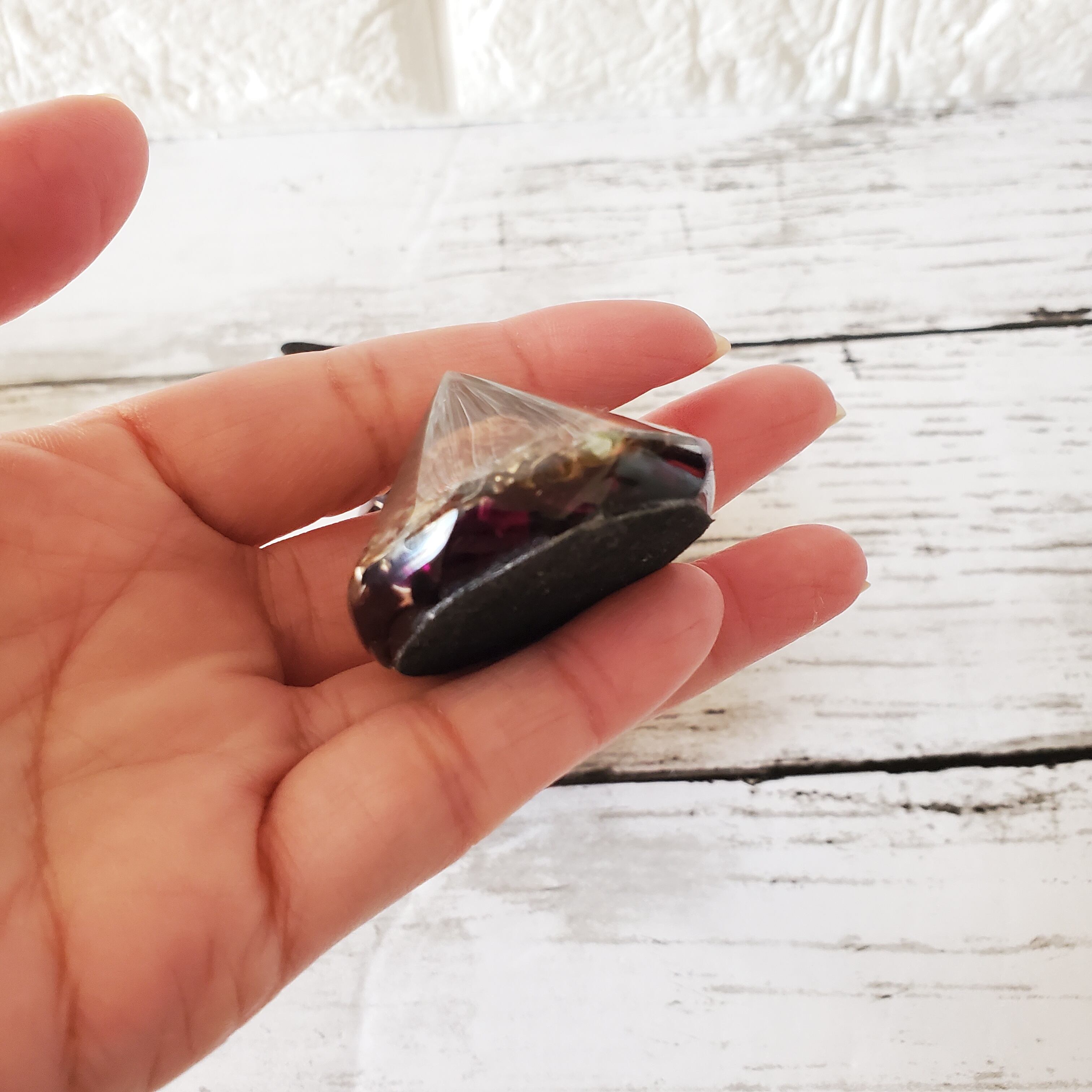 レジン(樹脂)で固めの鉱石を入れますのでキラキラした仕上がりです。