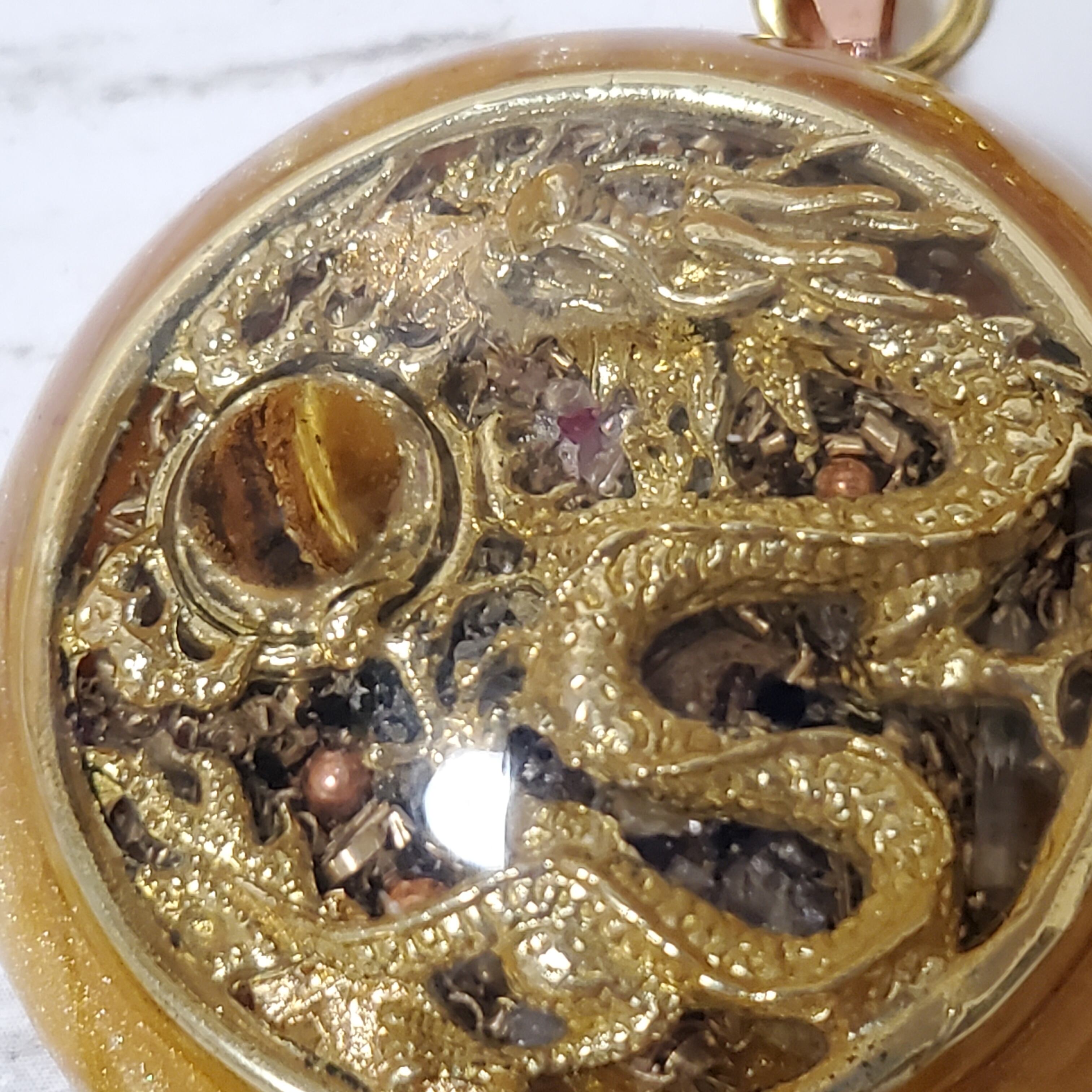 ゴールドのドラゴンが持っている玉は、タイガーアイ