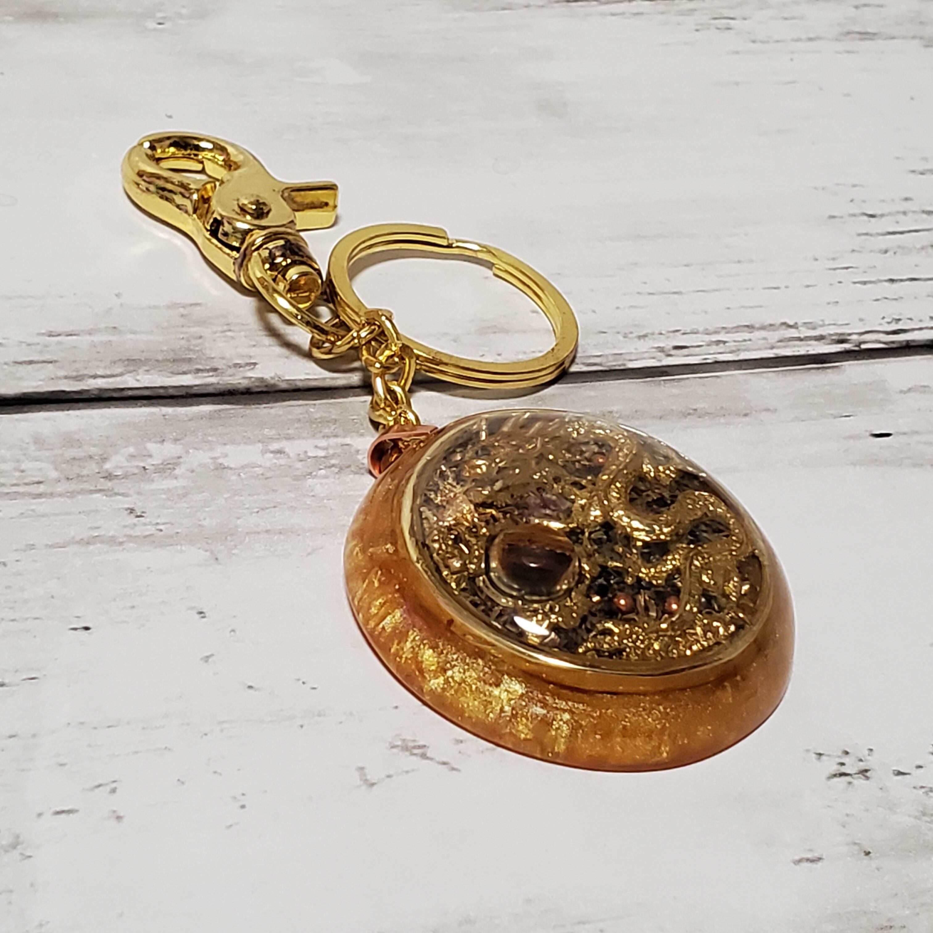 力強い「龍」のモチーフが埋め込まれたオルゴナイトキーホルダー