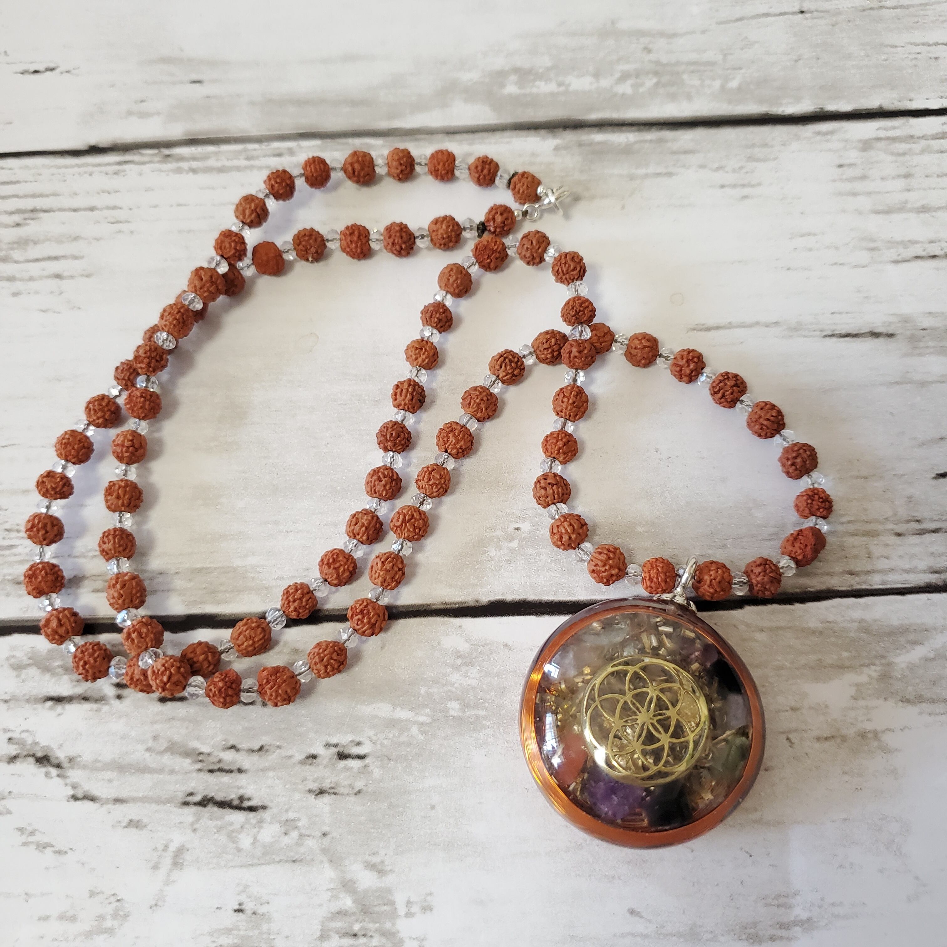 ルドラクシャ シードオブライフのオルゴナイトネックレス in バリ島